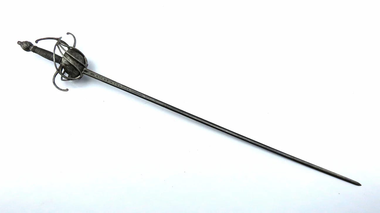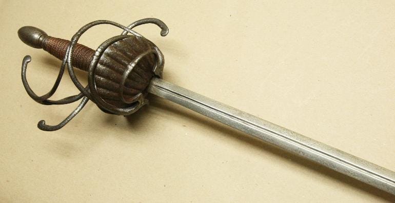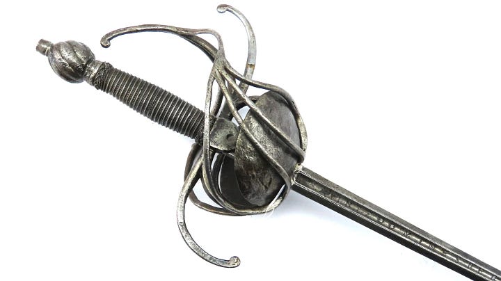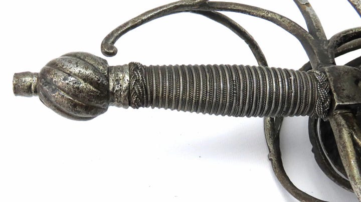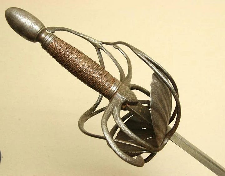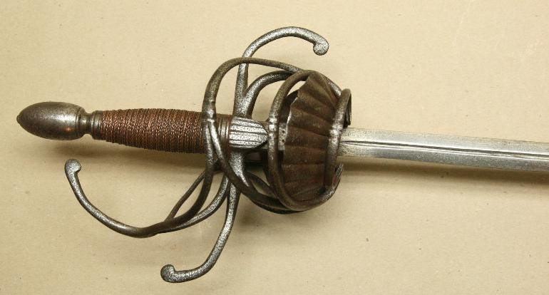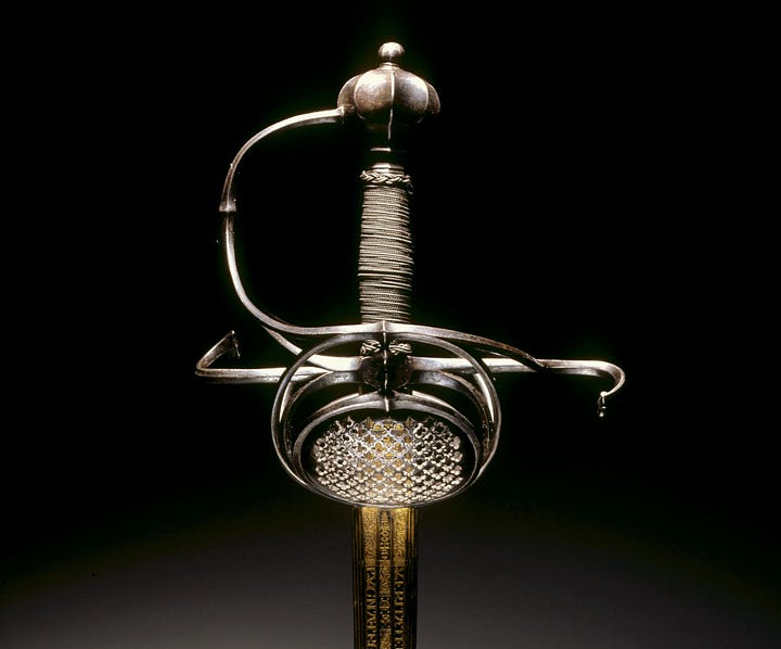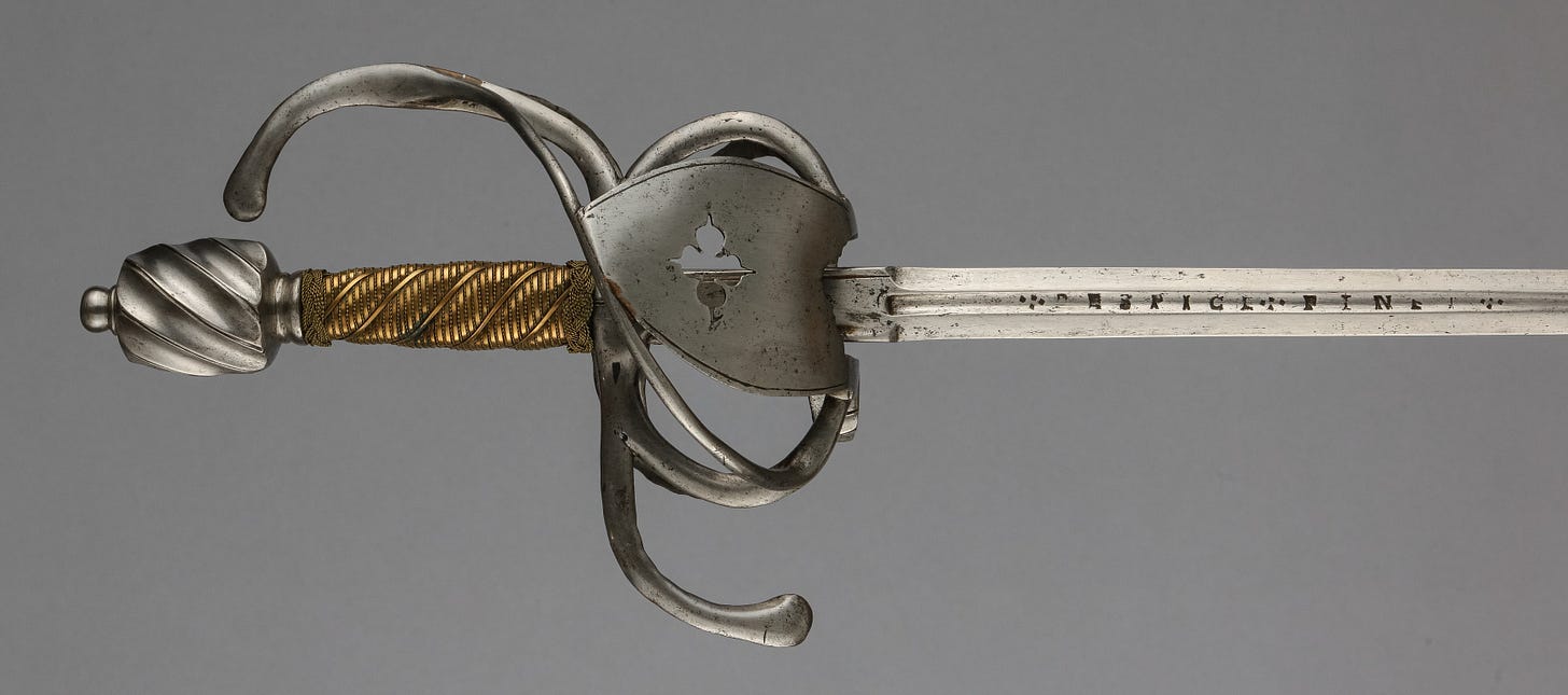 Or so I would have thought before I saw the earliest attempts to close the gaps in swept hilts. They just took a classic three-ring swept-hilt rapier and added shell plates on the inside. Next, I am looking at some examples.