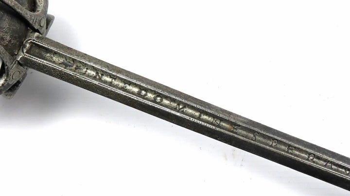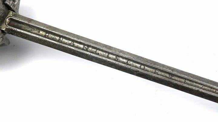 This is a piece on sale by West Street Antiques for £3,795. In the past, I bought a British 1788 Light Cavalry Officers Sabre from them, which I like a lot. What caught my eye was the earliest year (c. 1580-1620) for this type that the seller attributes to Francisco Ruiz the Elder (Spanish, Toledo, died after 1617), or his son, Francisco Ruiz the Younger (Spanish, Toledo, active first half of 17th century).