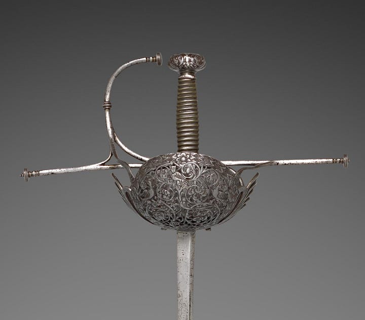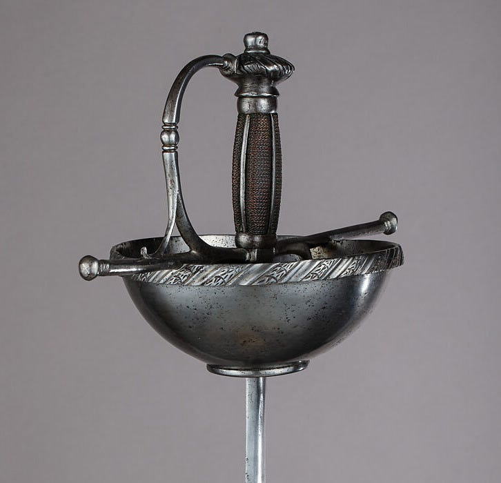 If we think of the development of rapier hilts linearly, which is not always the best idea, we would start with swept hilts and end up with cup hilts. But how would we imagine the transition? How did people move towards the full cup-hilt design?