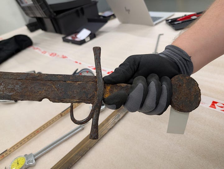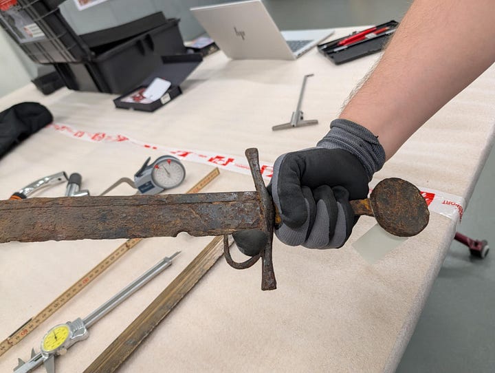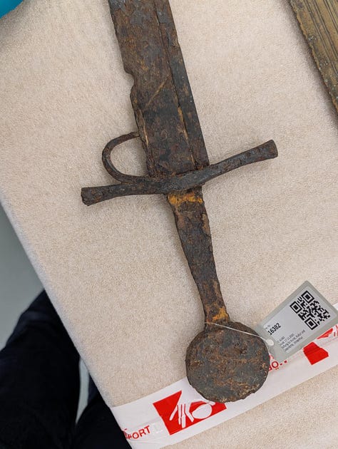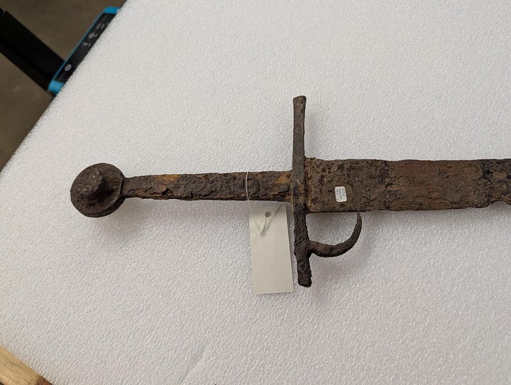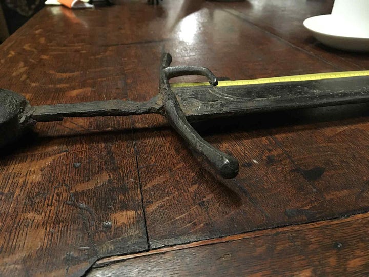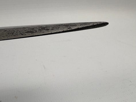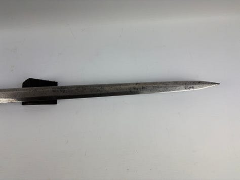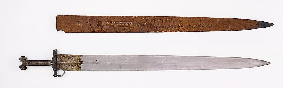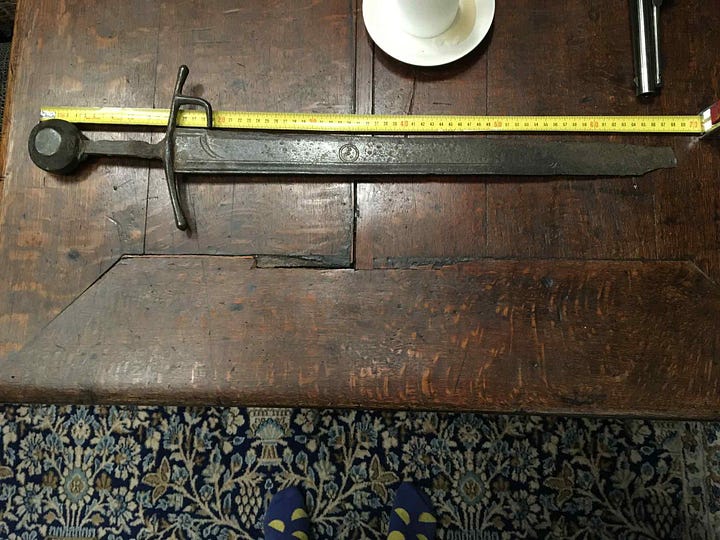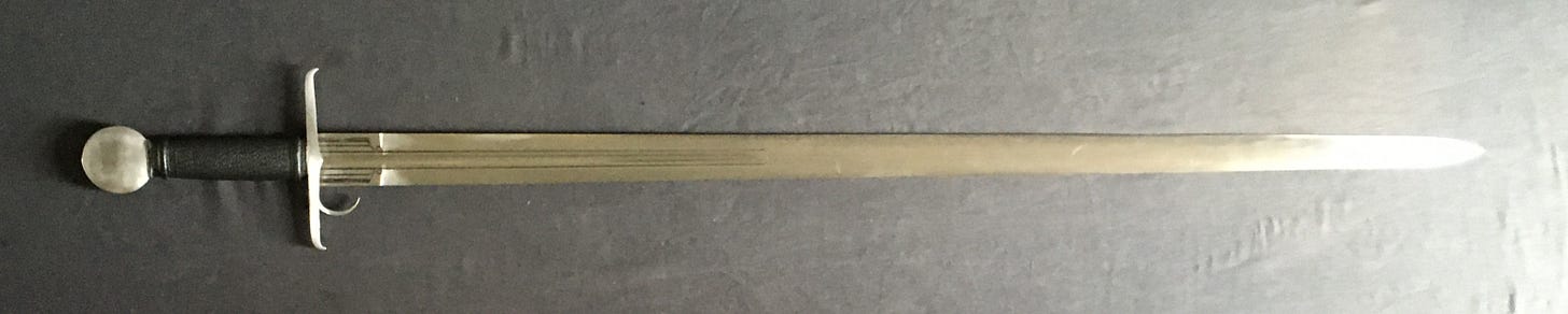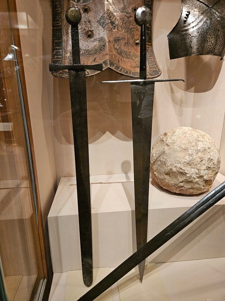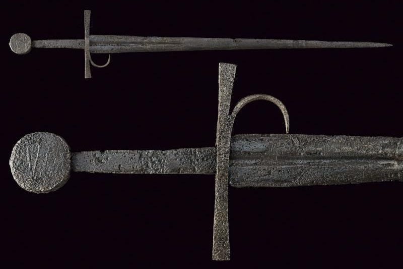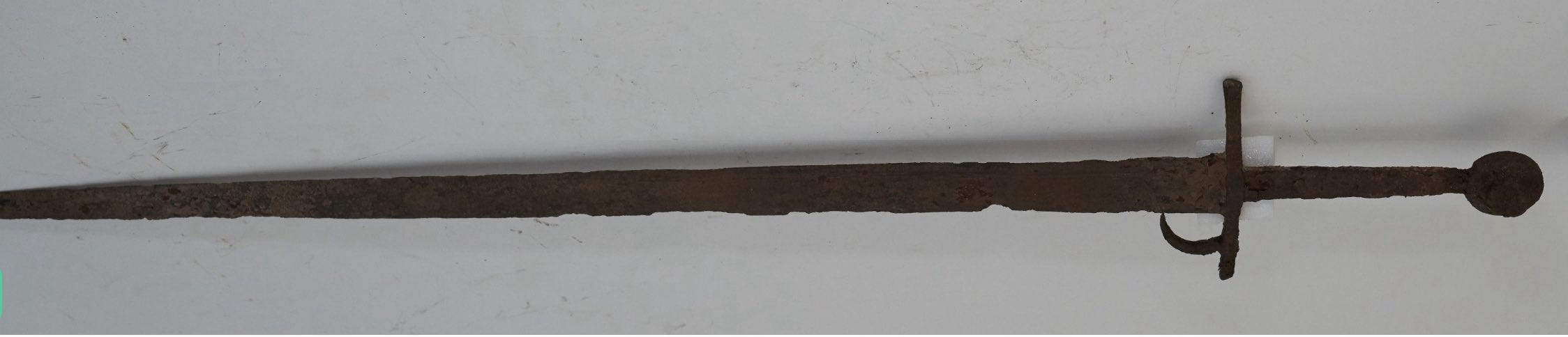 I’ll end with this Italian piece from the later part of the 1300s. With a 92.5cm long blade and at 115.7cm overall length, this is a longsword with an acute tip profile.
