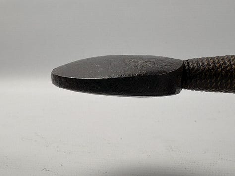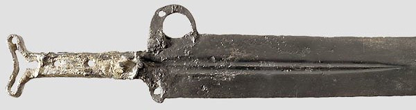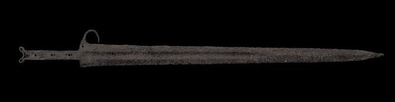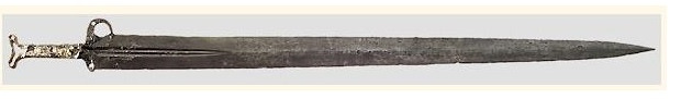 If we look at the following 101cm long piece, we get an 80cm long blade and a 13cm long grip (no pommel). The grip is not that long for this to be a longsword in that definitive sense. Probably, this is from the later period, when we see in art longer grips on swords, even when used with a buckler. Naturally, I am assuming that all these pieces are authentic to their periods and not made later.