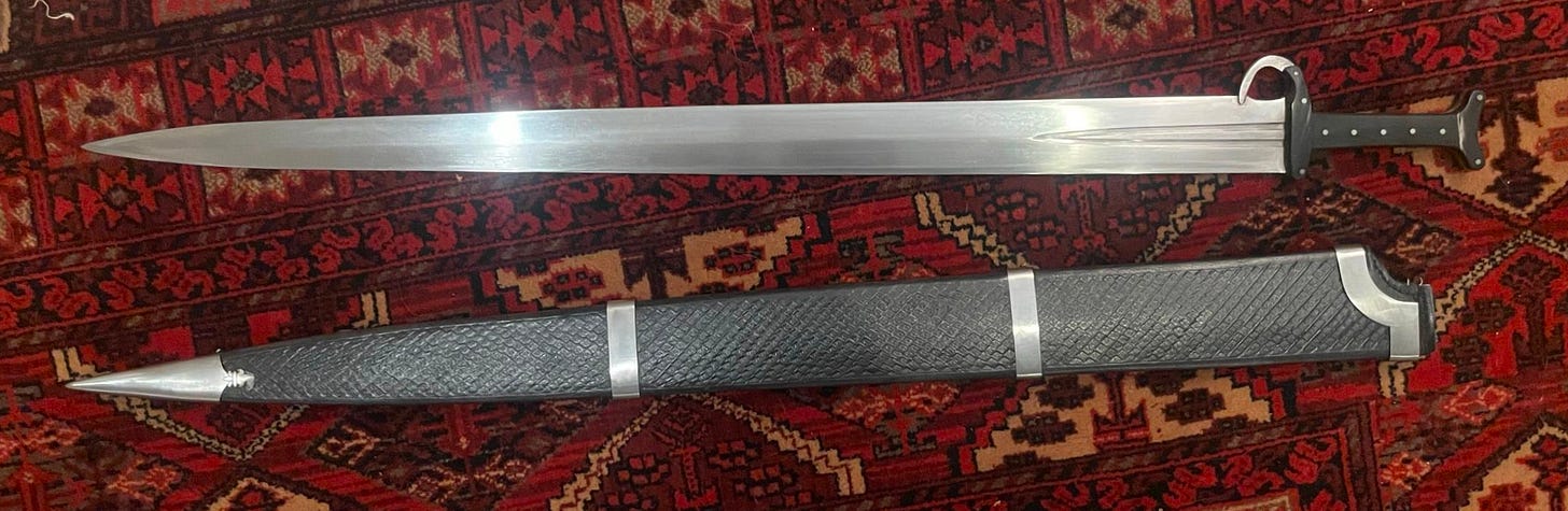 Other swords that we can find online show the same wide, cut-focused blades. While these are one-handed swords, the blades do look a bit too wide to allow for a comfortable fingering of the crossguard.