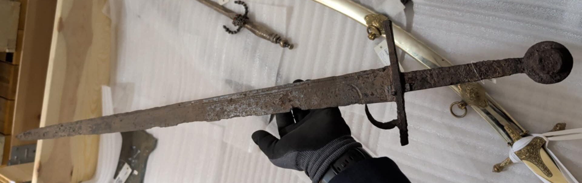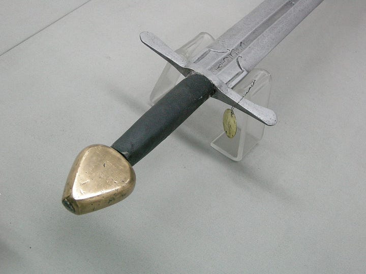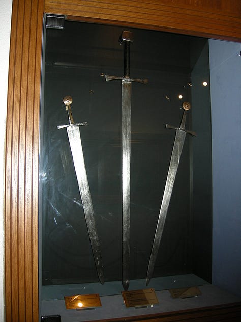 Another longsword that has received more attention in the last few years, with its shoddy pommel work, but with a blade that I am told still feels sharp, is held in the Royal Armoury. This 122.5cm long sword that weighs 1707g, with a 96.6cm long and 5.45cm wide blade, is clearly oriented towards cutting.