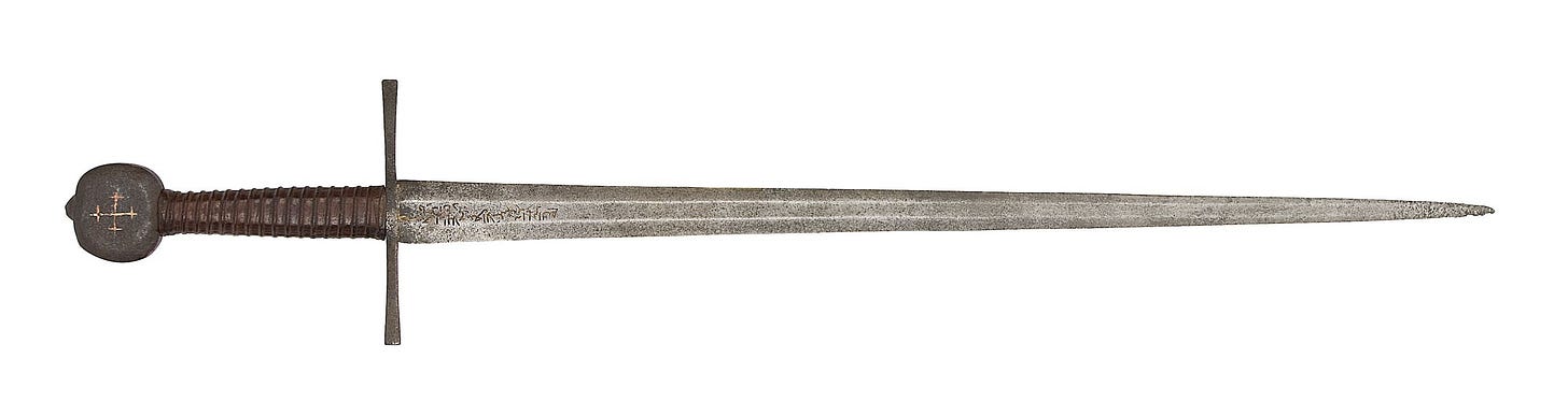 The most famous sword of this type out of all of them, which must have been made before 1432. The markings from the Arsenal of Alexandria are what allows us to date the sword quite precisely. They read: