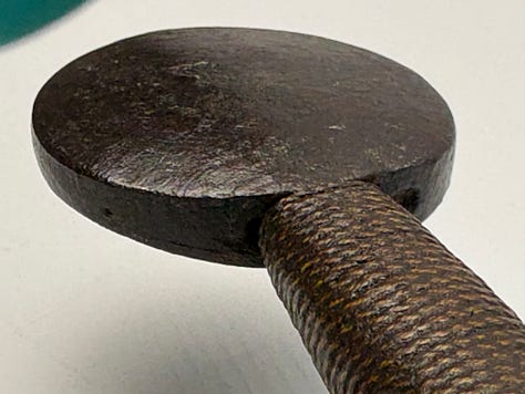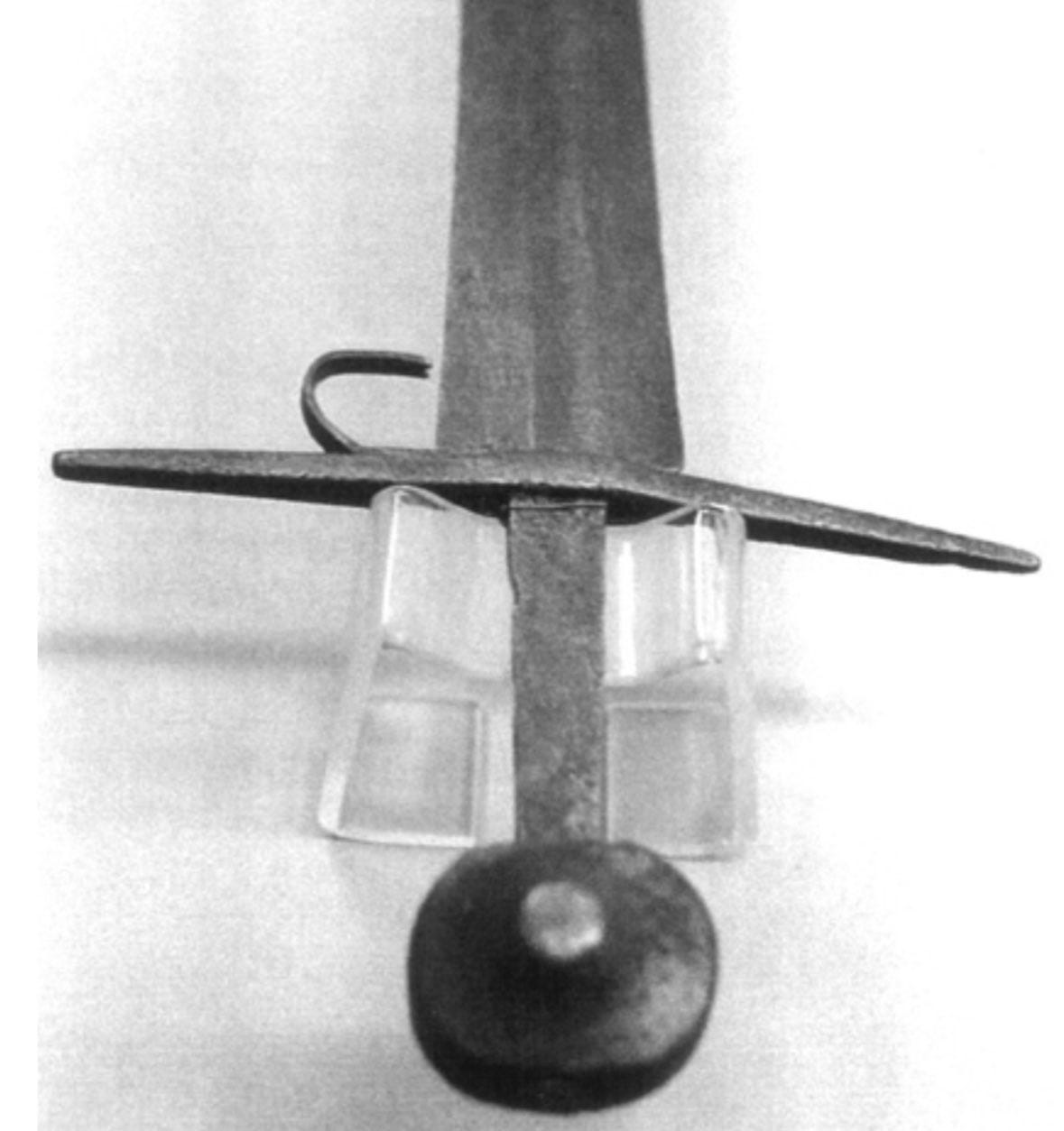 We are not talking about falchions with clip points, or exaggerated proportions as we see in art, but more of a backsword-type blade. We know these types of single-edge blades have been around since the Viking age and probably before, such as on the seax. Add a small ricasso and a square-like ring, and we see the earliest form of these hilts. Since the blade was not symmetric, no reason for the hilt to be either. Later, it may have been adopted on double-edged blades, and not just single-handed swords either. But this may be the first time we see finger-ring hilts being used, and the design makes perfect sense in its context.