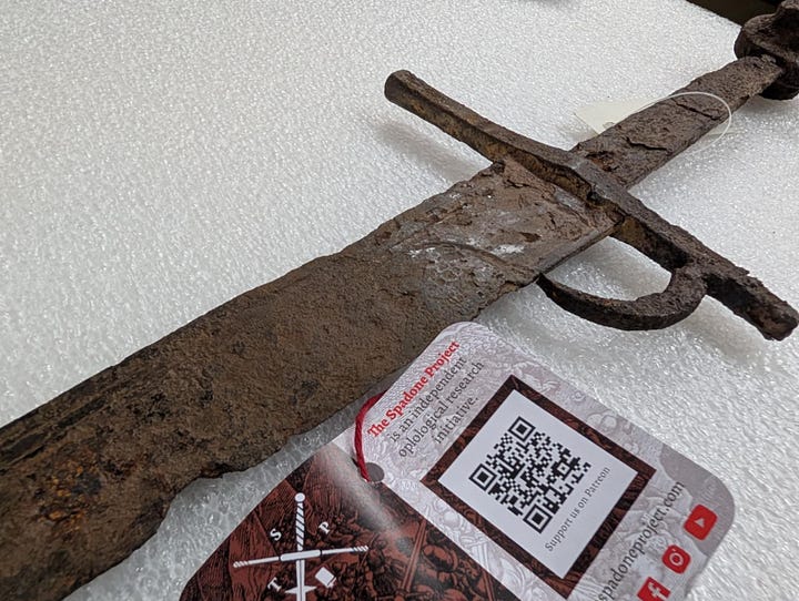 People have wondered for a long time why single finger-ring hilts emerged on double-edged swords. My belief (with a caveat left for later) is that they started on single-edged swords in the early 1300s, such as on the piece below. A lot of these early pieces are in the SKKG collection, and the images shown were taken by The Spadone Project.
