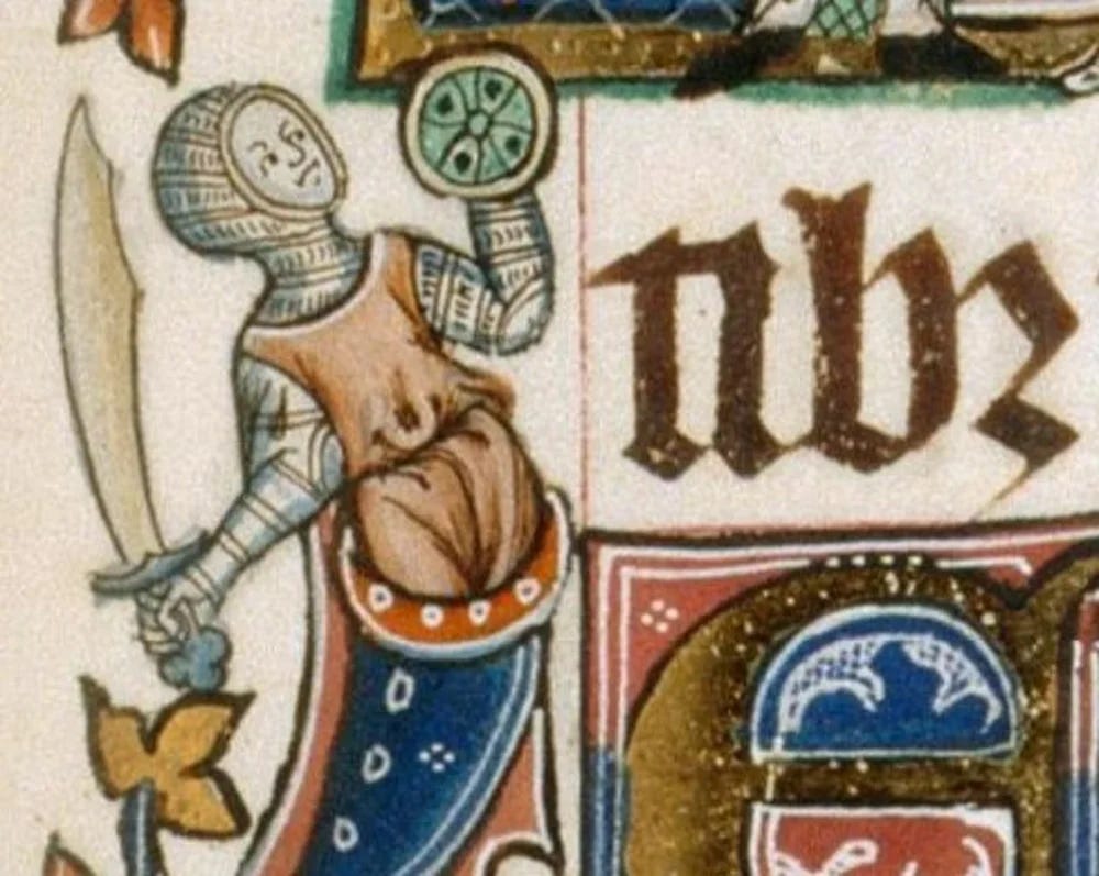 We shouldn’t be surprised by the existence and use of the buckler in the 13th-14th centuries. This is an offhand shield/weapon that was around for over a millennium at that point. If seeing the sword and cape or dual-wielding being used so early is a bit surprising, this is not the case for the buckler.