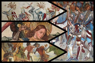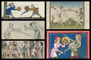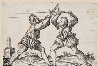 in old art that depicts fencing scenarios